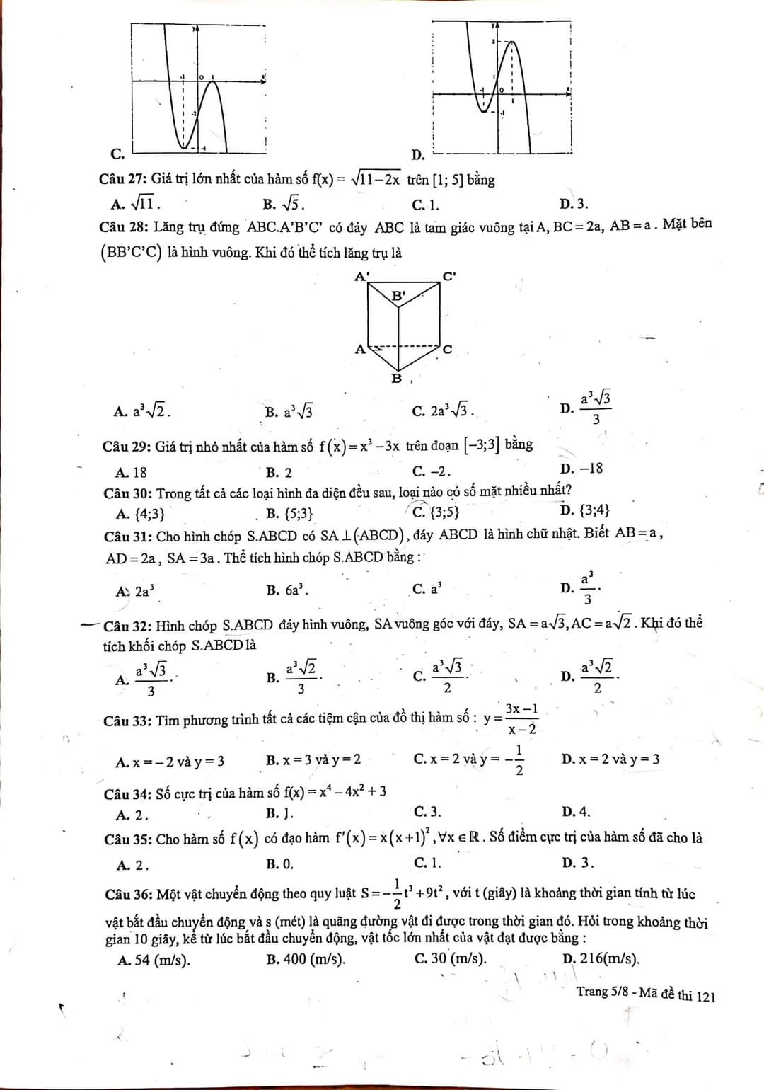 Xem thêm: Đề kiểm tra giữa kì 1 Toán 12 có đáp án (trắc nghiệm)